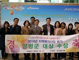 | 지역사회보장계획 2017년 시행결과,‘양평군’대상 수상 (0) | 2018.10.15 |