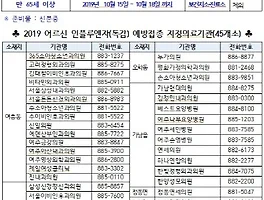 | ‘19~’20절기 어르신 인플루엔자 무료 예방접종 실시 (0) | 2019.10.07 |